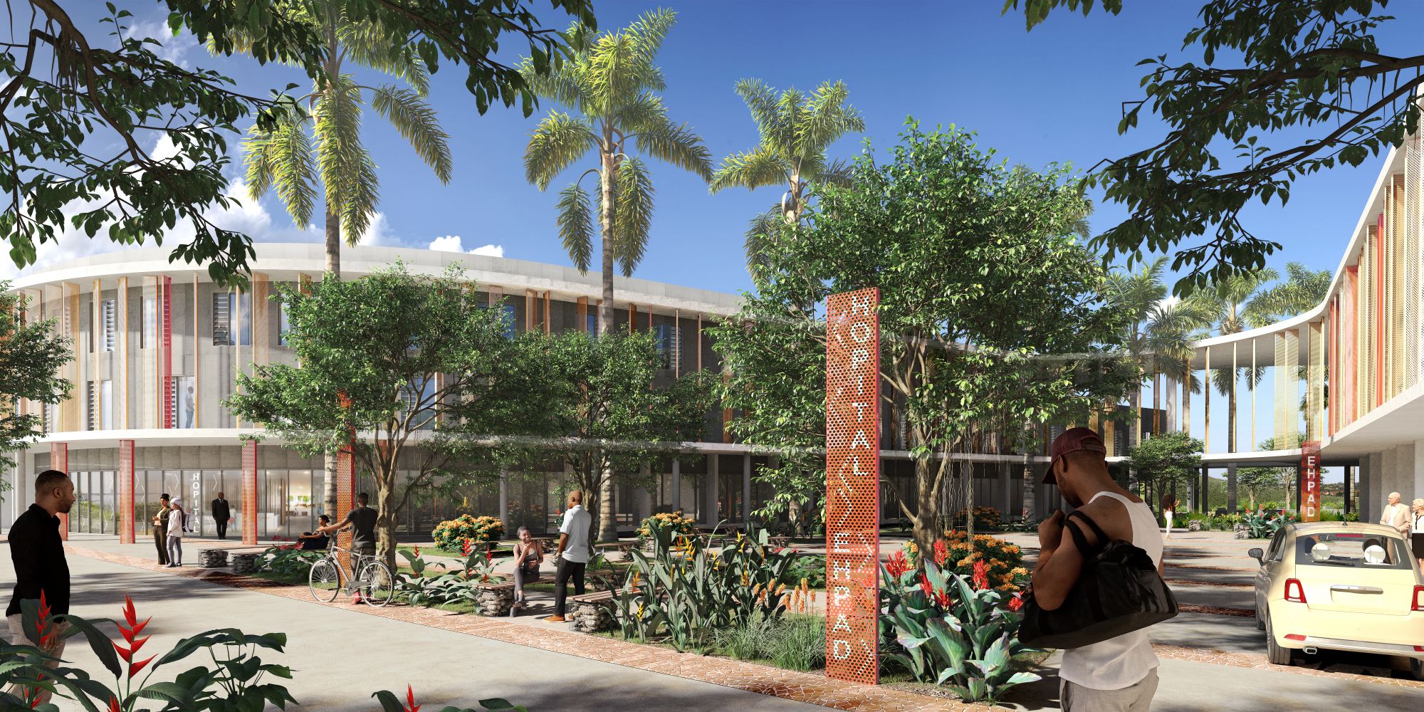 Etablissement central de la carte sanitaire en Martinique depuis 170 ans, le Centre Hospitalier de Saint Esprit spécialisé dans la prise en charge des troubles addictifs était devenu trop vétuste pour être rénové, témoignant par là même des difficultés et du manque de moyens de la plupart des établissements de santé locaux. La mission confiée à Kardham consiste en sa reconstruction sur un terrain aujourd’hui agricole du bourg de Saint Esprit ; un site en devenir qui participera également à l’expansion de cette agglomération du Sud de l’île.