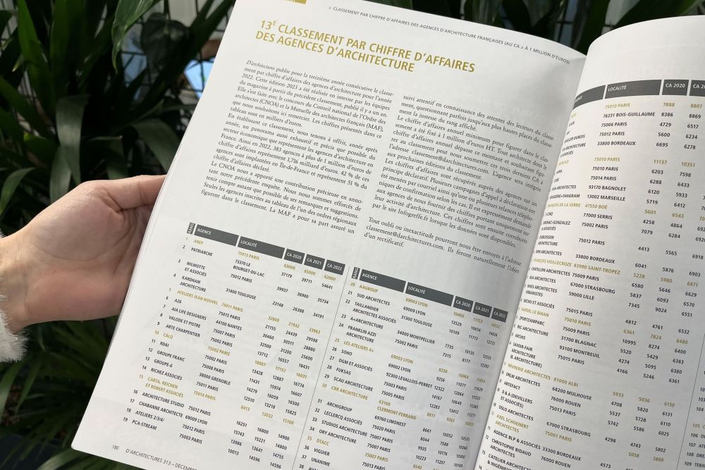 Chaque année, le magazine d'Architectures publie un tableau des agences d’architecture classées en fonction de leur chiffre d’affaires déclaré (ici, 2022). Kardham passe de la 6e à la 4e place !