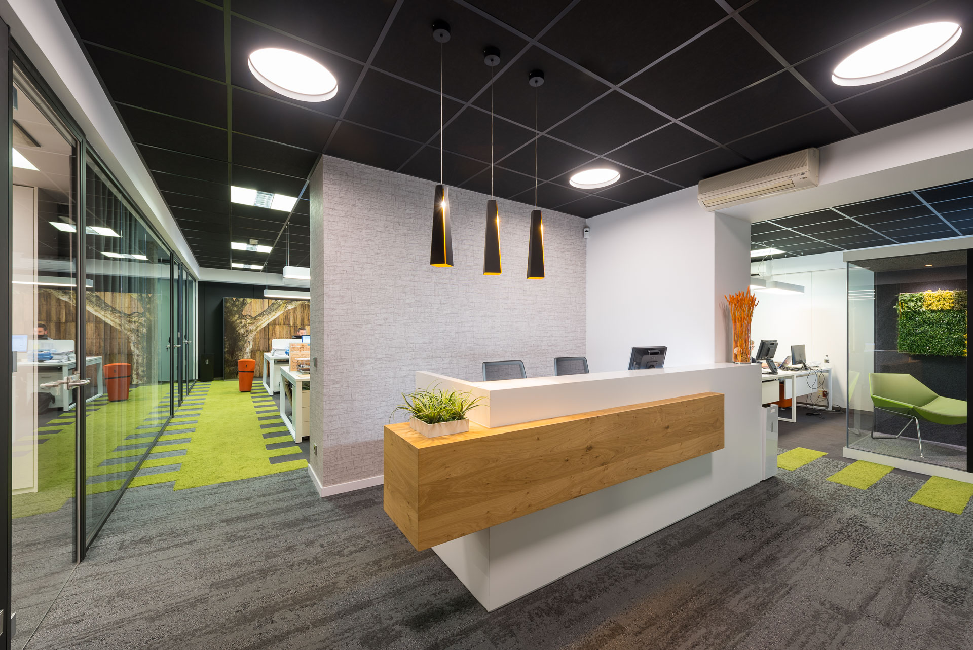 En outre, une attention particulière a été accordée au mobilier, en sélectionnant des pièces qui non seulement complétaient la conception esthétique de l'espace, mais qui étaient également fonctionnelles et ergonomiques. Un mobilier adapté est un élément clé pour créer un environnement de travail confortable et productif.